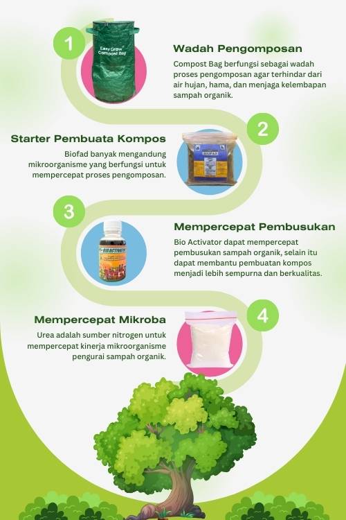 Tenang saja, karena kami siapkan panduan pembuatan pupuk kompos dengan compost bag lengkap disetiap pembelian. Selain itu Anda masih bisa bertanya kepada tim customer service kami kapan saja.